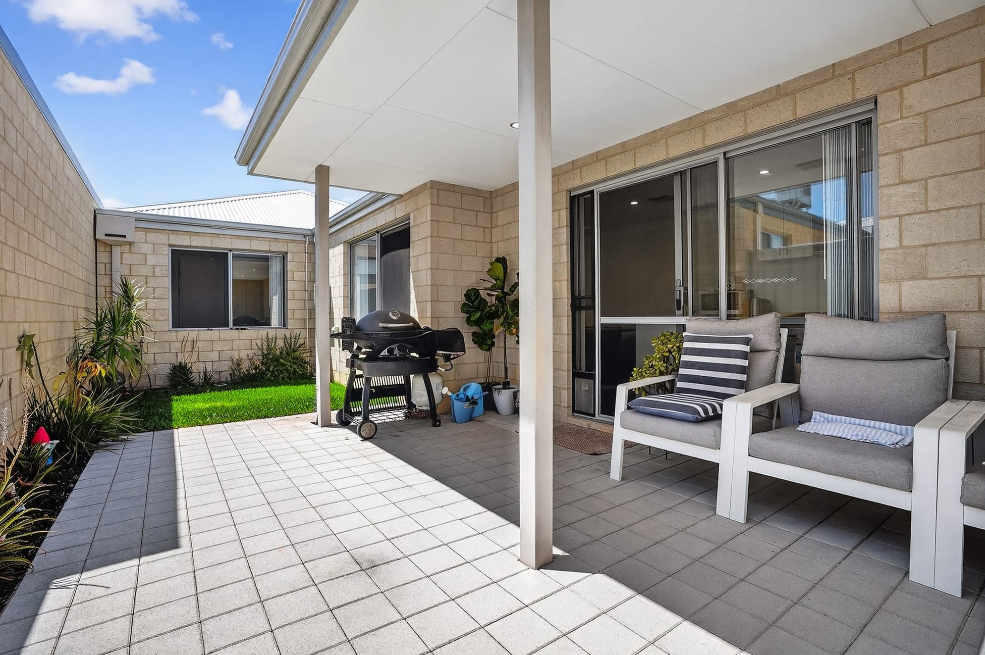 • Covered alfresco and low-maintenance courtyard
